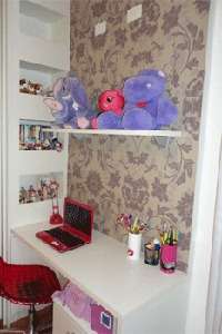 O conceito principal do ambiente foi definir bem as áreas de dormir e de estudar, sem deixar de lado o uso de tendências recentes, como dar destaque a um determinado ponto do ambiente. Para isso, as profissionais elegeram o laminado de alta pressão Saara Floral, Linha Collection, da Pertech. A estampa floral cumpriu o papel de separar os ambientes e agregou charme à bancada de estudos.